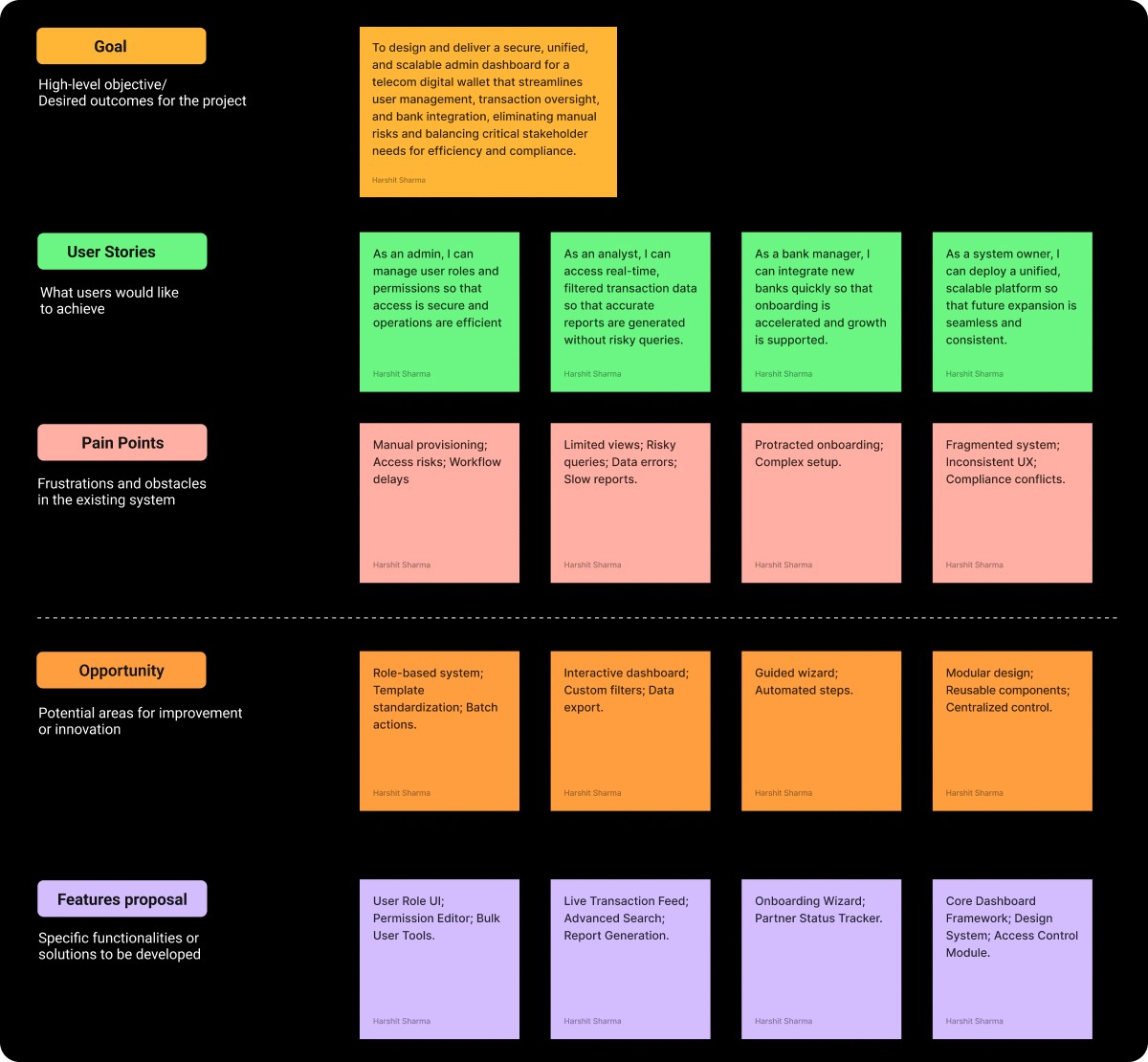 Telecom | Fintech industry, an admin-facing dashboard for a digital wallet, used by admins, compliance analysts, and partner bank managers to efficiently manage operations and transactions.
